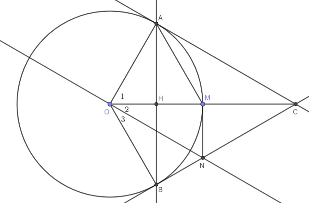 $OM \perp AB$ tại trung điểm $H$ của $AB$
