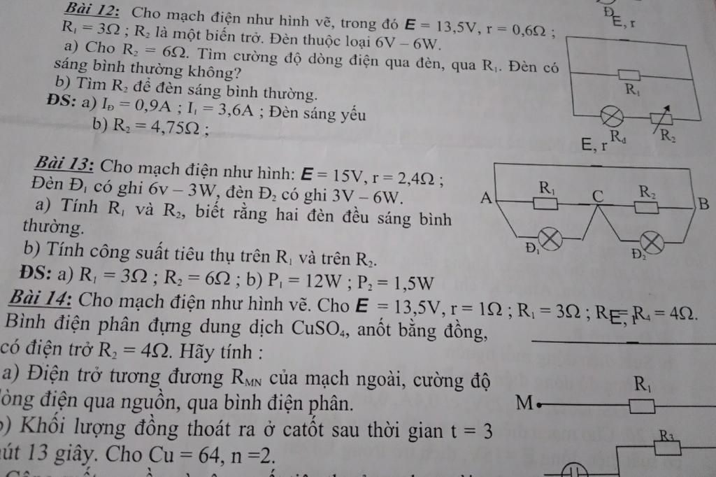 Cường độ dòng điện qua các điện trở: