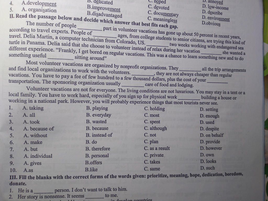 IL Read the passage below and decide which answer that best fits each gap.
