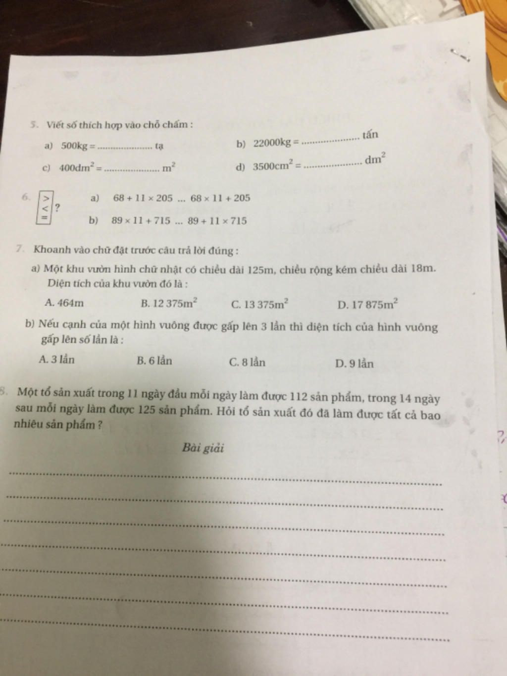 a, 500 kg = 5 tạ b, 22 000 kg = 22 tấn