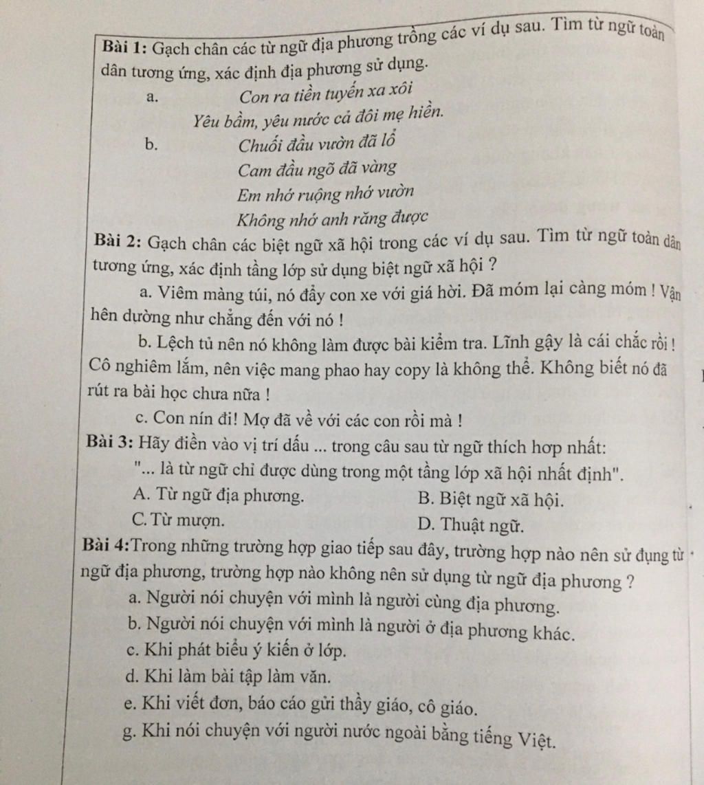 - Trường hợp không nên sử dụng từ ngữ địa phương là: b - e - g