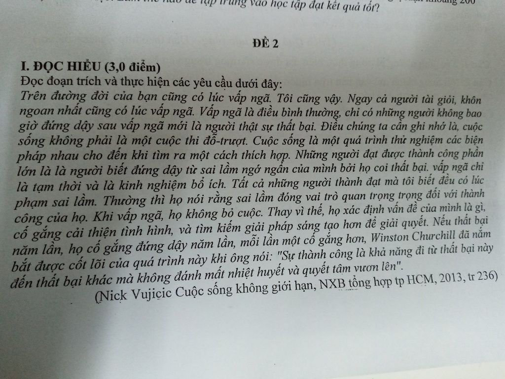 1. Tác giả quan niệm: " Ngay cả người tài giỏi, khôn ngoan nhất cũng có lúc vấp ngã.Vấp ngã là điều bình thường, chỉ có những con người không bao giờ đứng dậy sau vấp ngã mới là người thật sự thất bại."