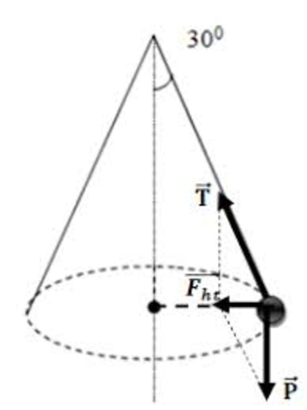 {F_{ht}} = P.\tan {30^0} \Rightarrow m\frac{{{v^2}}}{R} = mg\tan {30^0}\\