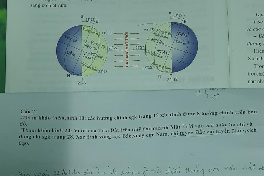 Vòng cực bắc: `66^0 33'` Bắc. Ngày `24` giờ vào ngày `22 - 6`