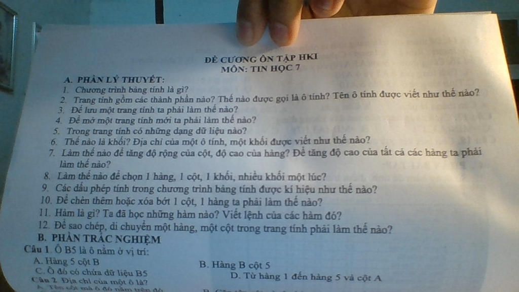2. - Thành phần chính của trang tính là ô, cột , hàng , hộp tên , khối ,thanh công thức.