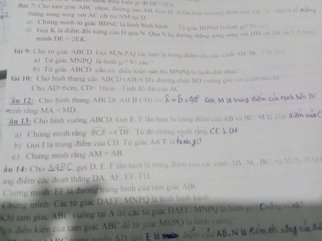 Bài 7: Cho tam giác ABC nhon, duơng cao AH Goi M. N lân tuot là trung diem củu A Oun B dung