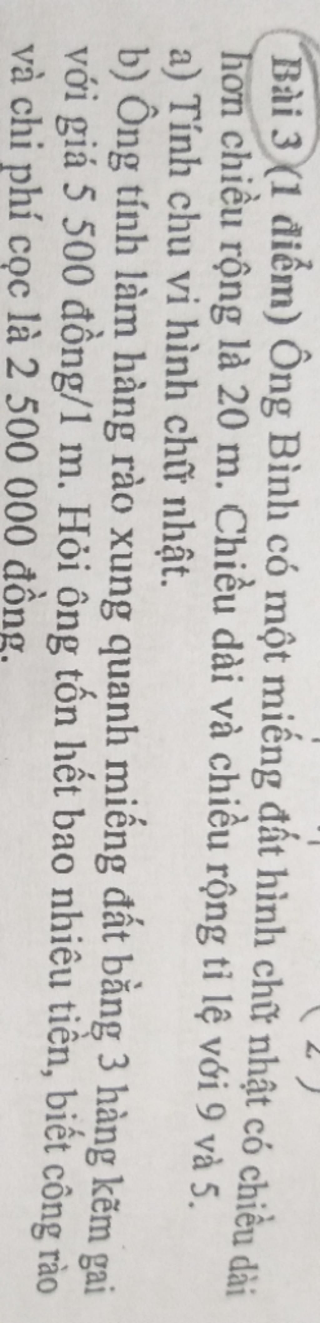 b.Số tiền ông làm hàng rào xung quanh miếng đất là: