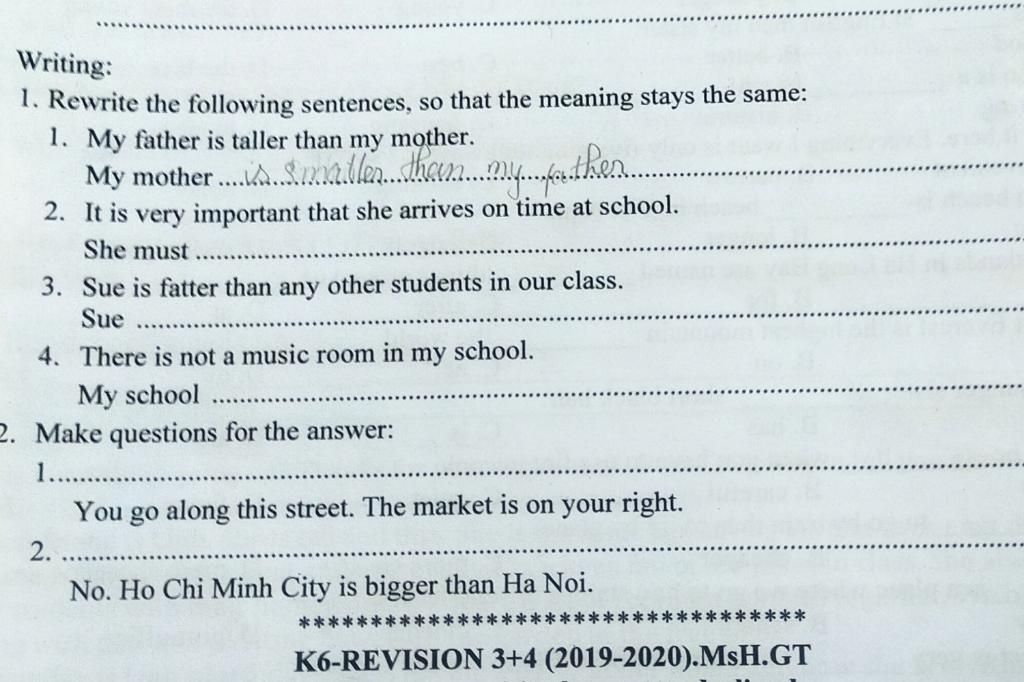 1. Rewrite the following sentences, so that the meaning stays the same:
