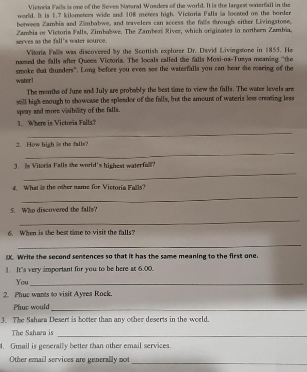 1.Victoria Falls is located on the borderbetween Zambia and Zimbabwe