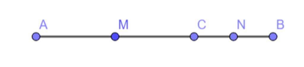 Từ $(1)(2)(3) \Rightarrow M$ và $N$ ở về hai phía so với $C$ hay $C$ nằm giữa hai điểm $M$ và $N$