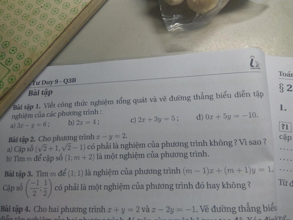 Bài tập 1. Viết công thức nghiệm tổng quát và vẽ đường thẳng biểu diễn tập