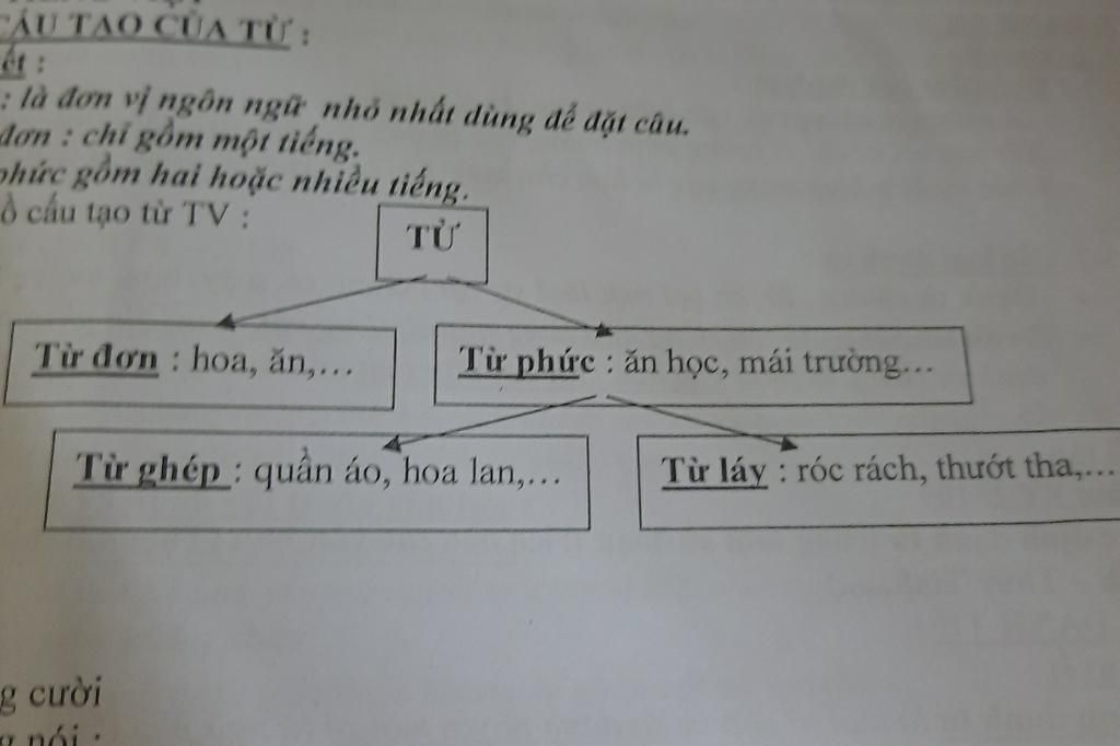 Từ đơn : là từ cấu tạo chỉ một tiếng