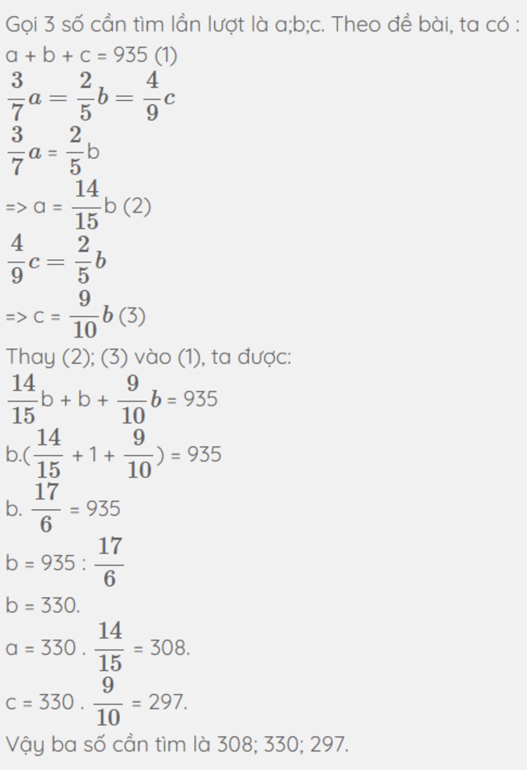 $\text{- Giá trị của 1 phần là : 935 : 85 = 11}$
