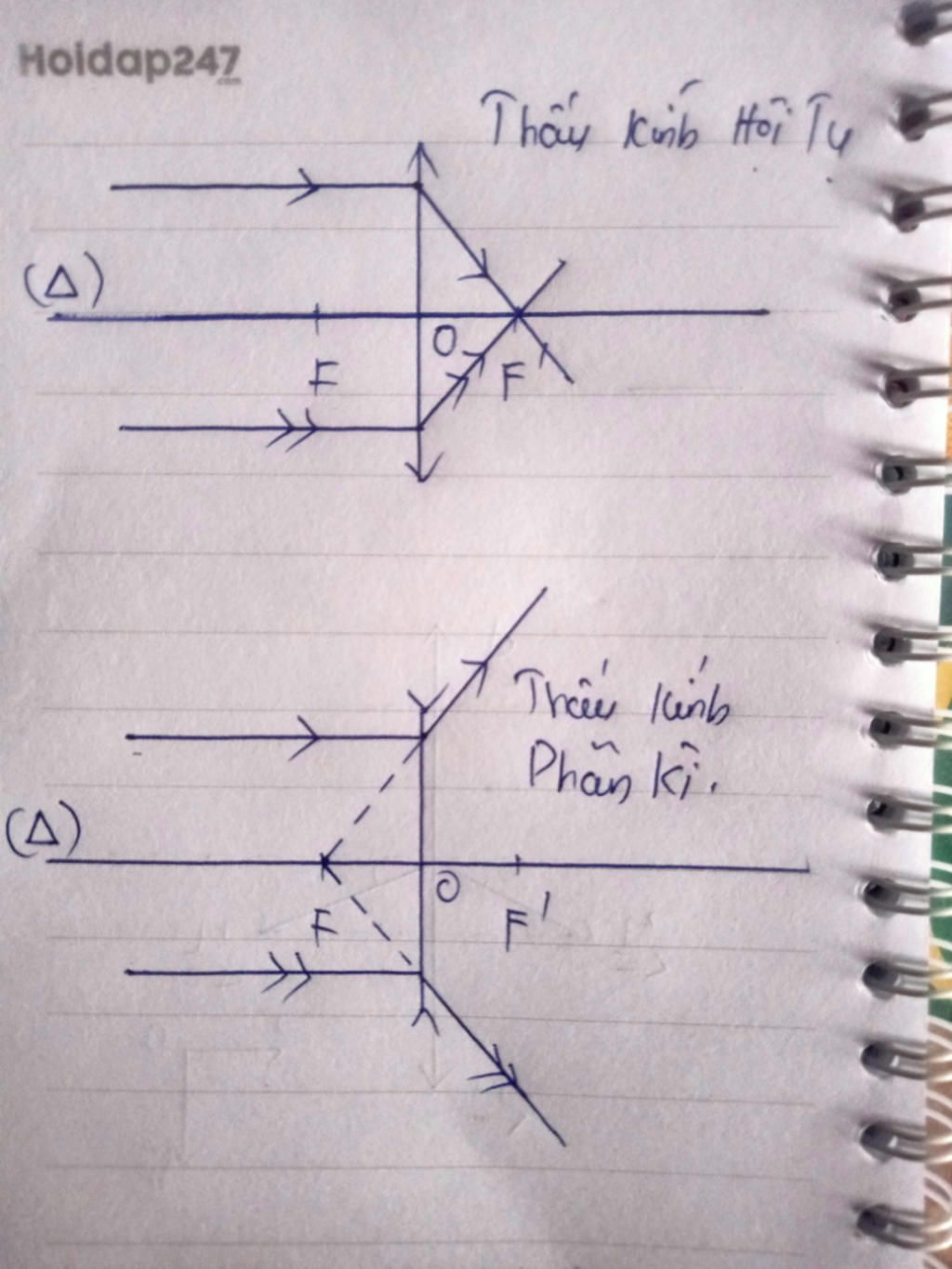 - Dựng thấu kính vuông góc với trục chính đó tại đó ta có quang tâm $O$