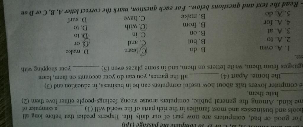 The computer lovers talk about how useful computers can be in business, in education and (3)...... the home. Apart (4)....... all the games, you can do your accounts on them, learn languages from them, write letters on them, and in some places even(5)_____________ your shopping with them.