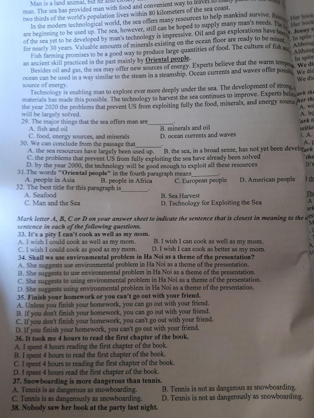 In the modern technological world, the sea offers many resources to help mankind survive. Re