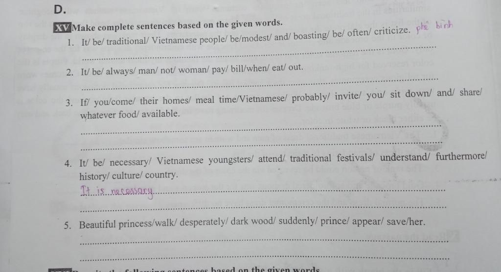 Tạm dịch: Nó là cần thiết cho thanh niên Việt Nam tham dự lễ hội truyền thống để hiểu thêm về lịch sử và văn hóa của đất nước của chúng ta.