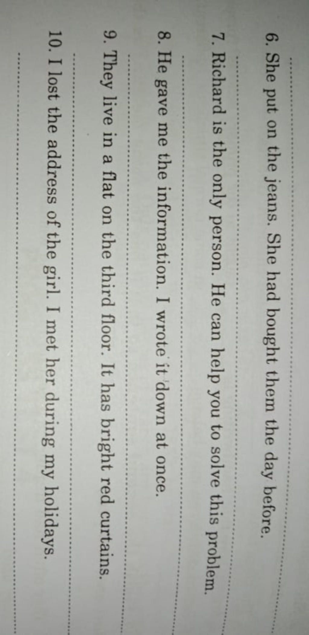 $9$. They live in a flat on the third floor which has bright red curtains.