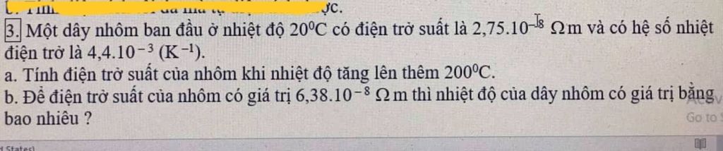 Điện trở suất của nhôm khi nhiệt độ tăng thêm \({200^0}C\) là: