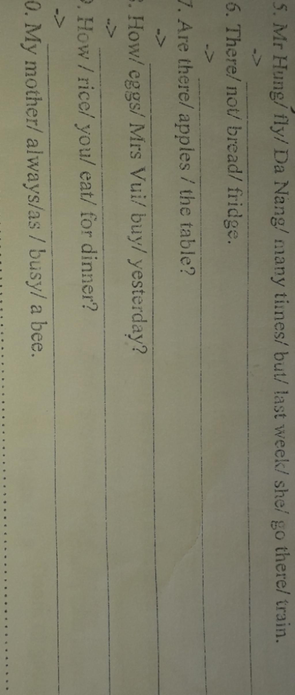 5.Mr Hung flys to Da Nang many times but he went there by train last week.
