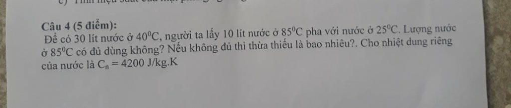 Vậy lượng nước ở 85 độ là thừa và thừa 2,5 lít.