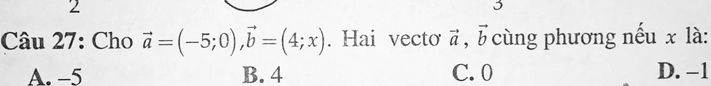 2 vecto cùng phương khi <=> -5/4 = O/x