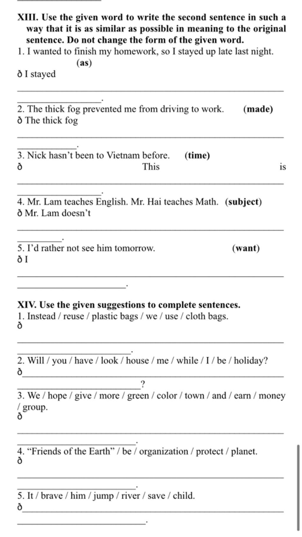 4. Mr. Lam teaches Englishh. Mr. Hai teaches Math. (subject )