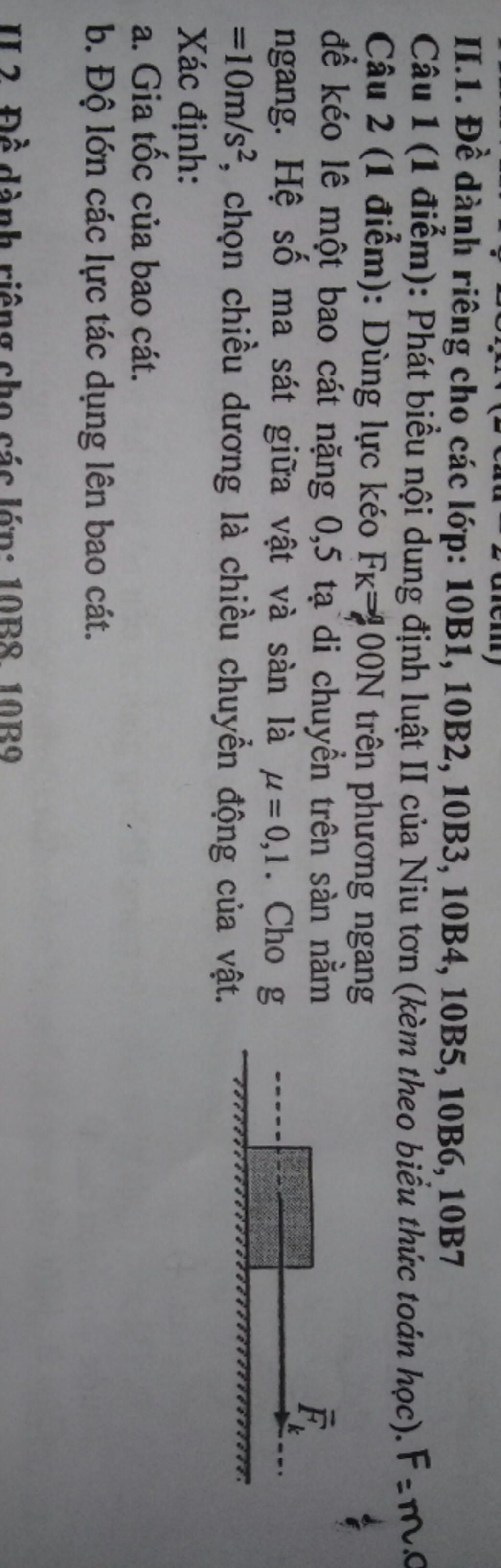 \Rightarrow a = \dfrac{{{F_k}}}{m} - \mu g = \dfrac{{900}}{{500}} - 0,1.10 = 0,8m/{s^2}