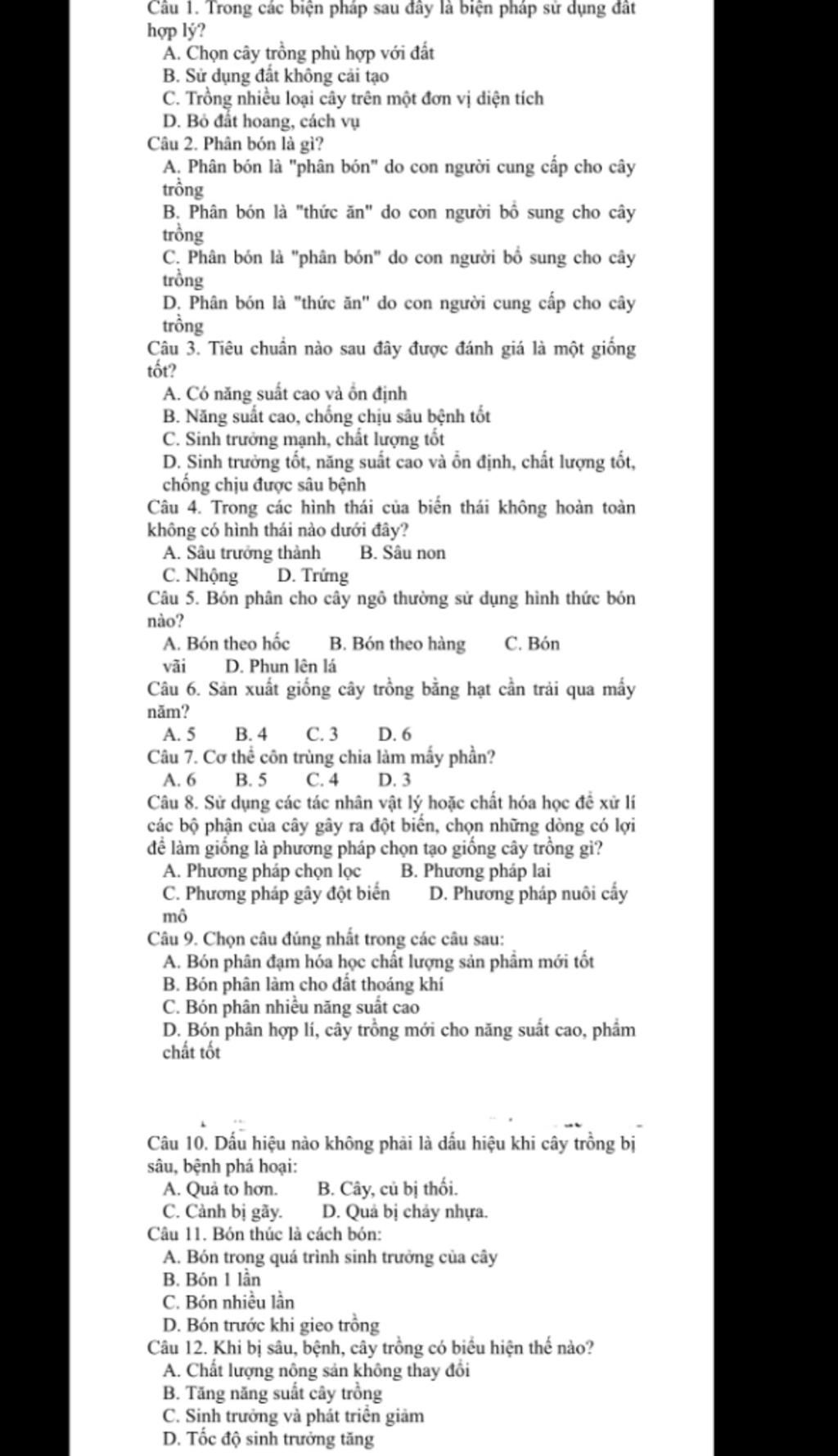 Câu 1. Trong các biện pháp sau đây là biện pháp sử dụng đất