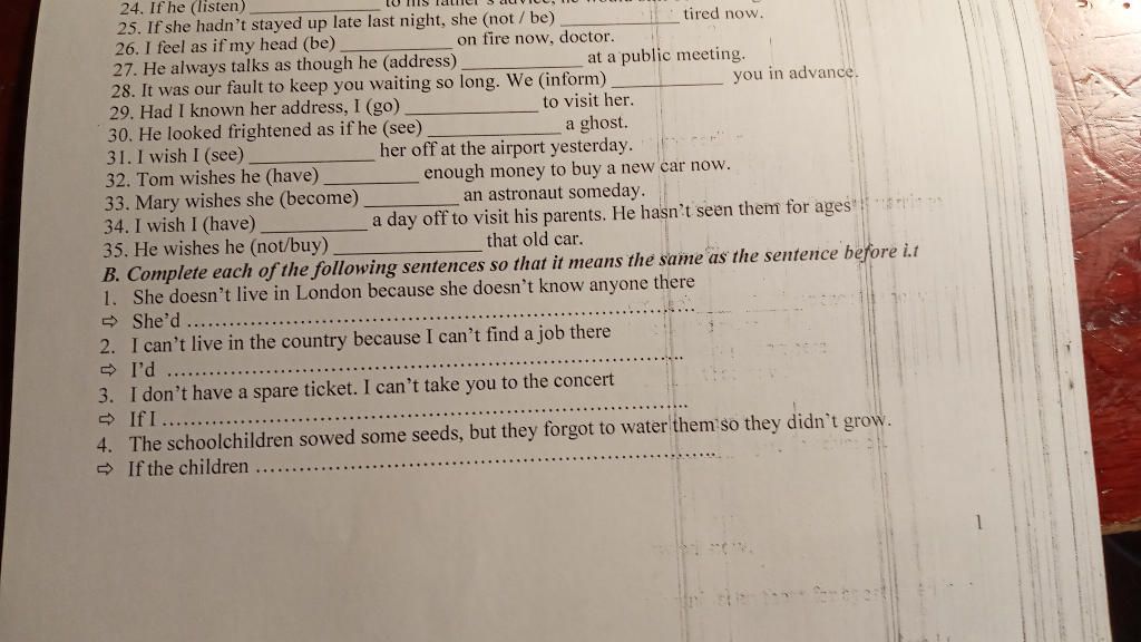 B. Complete each of the following sentences so that it means the same as the sentence before