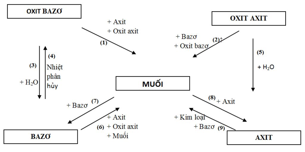 Các hợp chất vô cơ: oxit (ở đây nói đến oxit bazo, oxit axit), axit, bazo, muối.