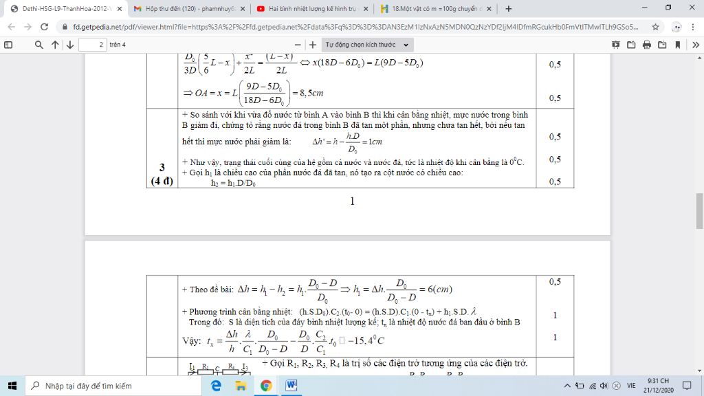 ∆h cũng bằng h-D.h'/D0 nhưng h' là chiều cao nước do đá tan ra lưu ý là có thể không tan hoàn toàn ,nếu h' bằng h thì ∆h bằng ∆h' cho nên lúc này đá tan hết