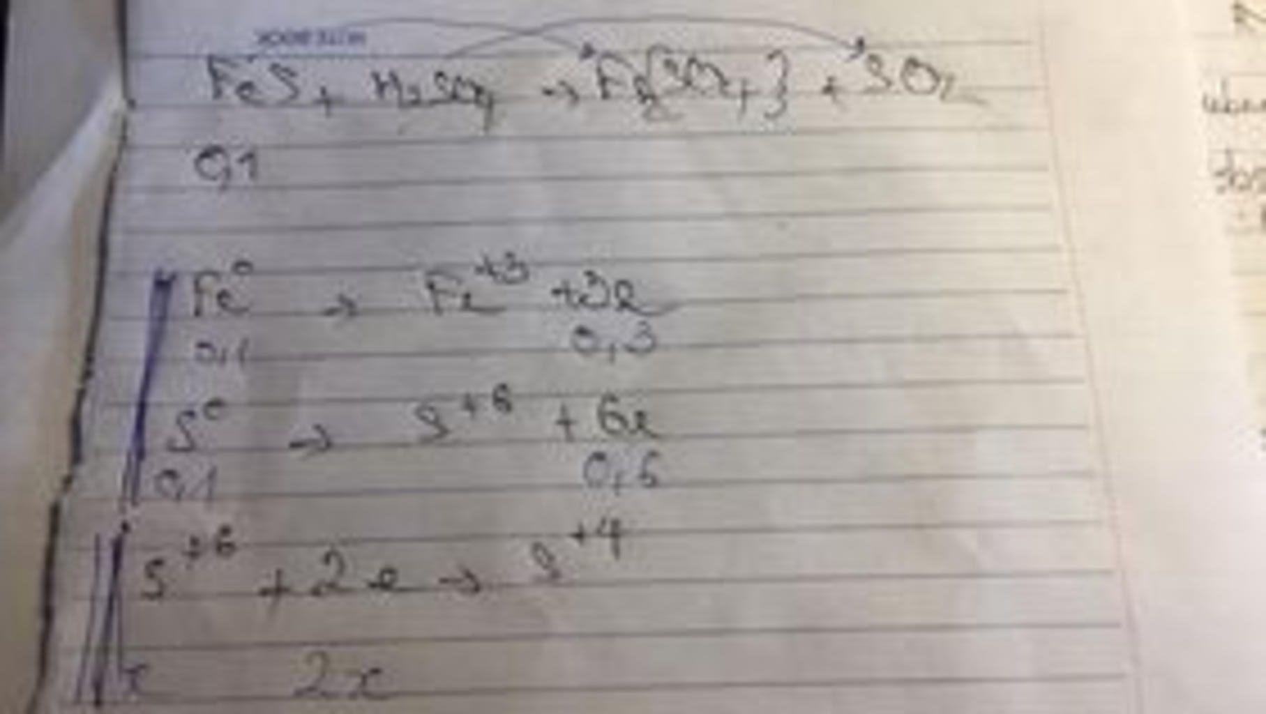 Trong phương trình: $FeS+H_{2}SO_4→Fe_2(SO_4)_3+SO_2+H_2O$