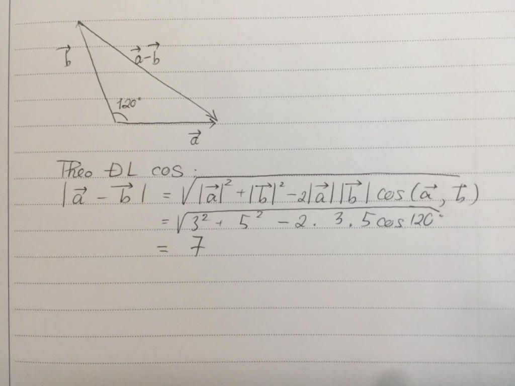 Đáp án: $|\overrightarrow{a}-\overrightarrow{b}|=7$