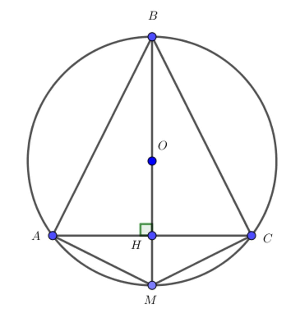 mà $\widehat{ABM}=\widehat{CBM}$ do $\Delta ABC$ cân đỉnh $B$ nên đường cao $BH$ cũng là đường phân giác