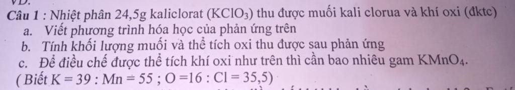 $a/2KClO_3\overset{t^o}\to 2KCl+3O_2$