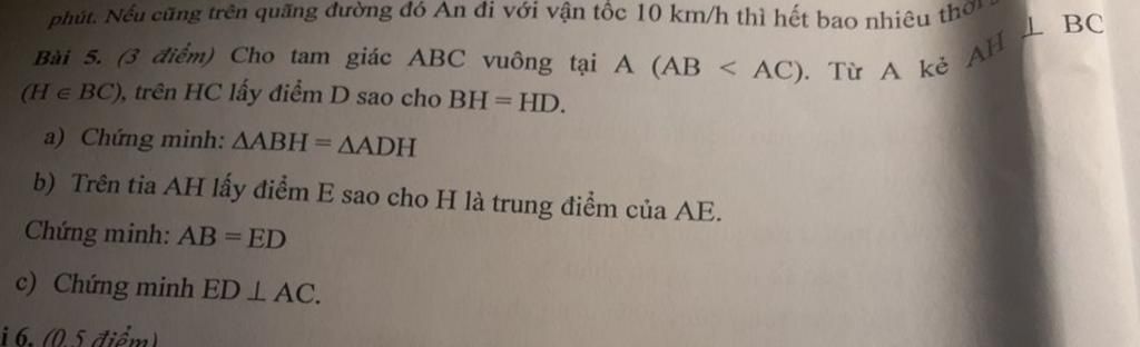 a, Xét 2 tam giác vuông ΔABH và ΔADH có: