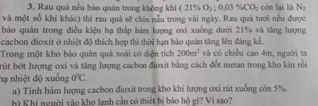 - Bình dưỡng khí, vì trong kho lạnh rất ít oxi.