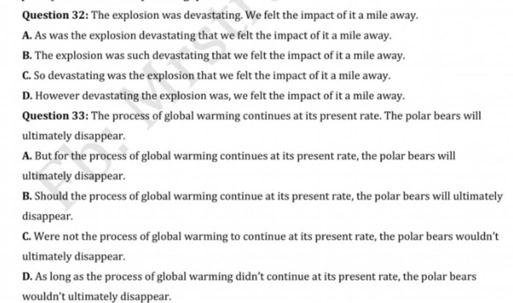 Question 32: The explosion was devastating. We felt the impact of it a mile away.
