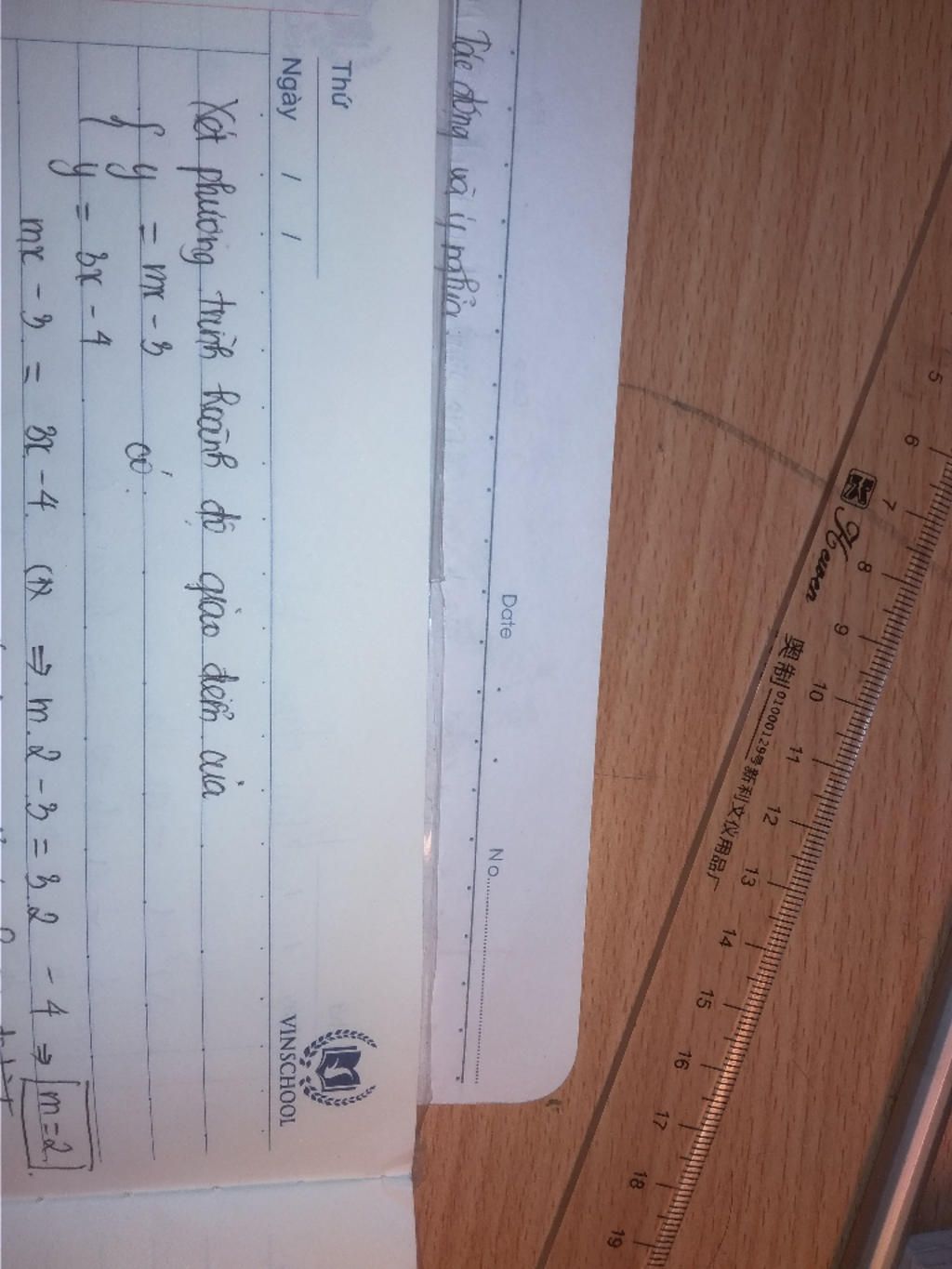 Cách 1:Gọi pt hoành độ giao điểm $y=mx-3$ và $y=3x-4$ là :