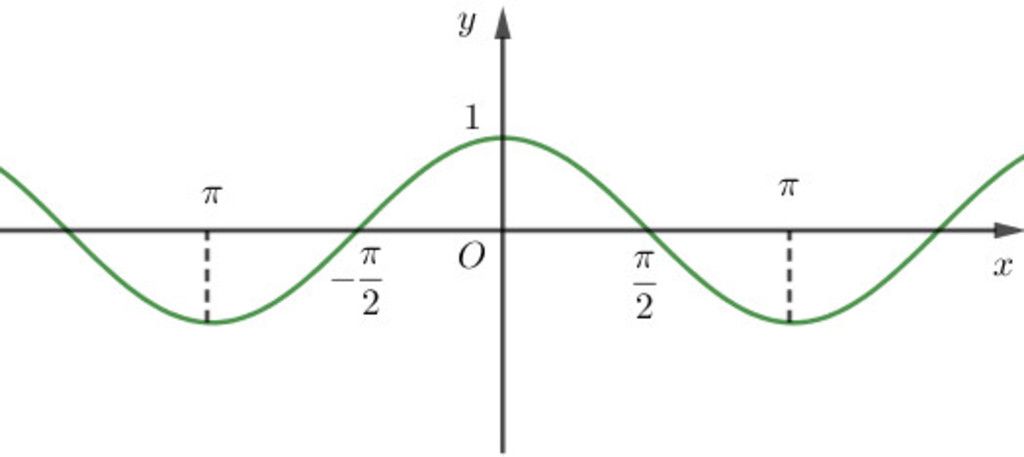 Đồ thị hàm số đi qua các điểm (0;1); $(\dfrac{\pi}2;0)$; $(-\dfrac{\pi}2;0)$;... đồ thị hàm số như hình vẽ.