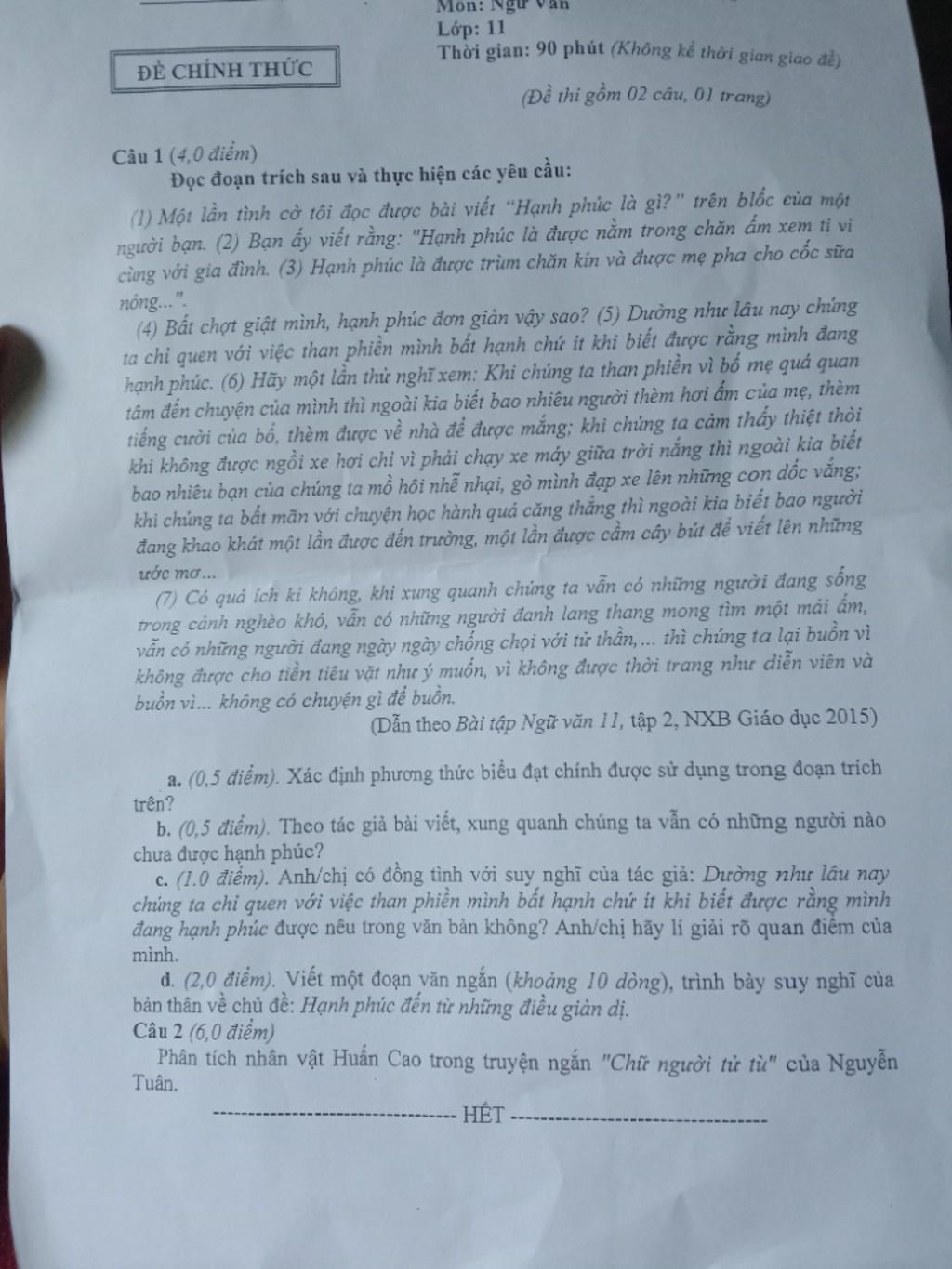Nguyễn Tuân- một nhà văn nổi tiếng của làng văn học Việt Nam. Ông có những sáng tác xoay quanh những nhân vật lí tưởng về tài năng xuất chúng, về cái đẹp tinh thần như "chiếc ấm đất", "chén trà sương"... và một lần nữa, chúng ta lại bắt gặp chân dung tài hoa trong thiên hạ, đó là Huấn Cao trong tác phẩm "Chữ người tử tù".