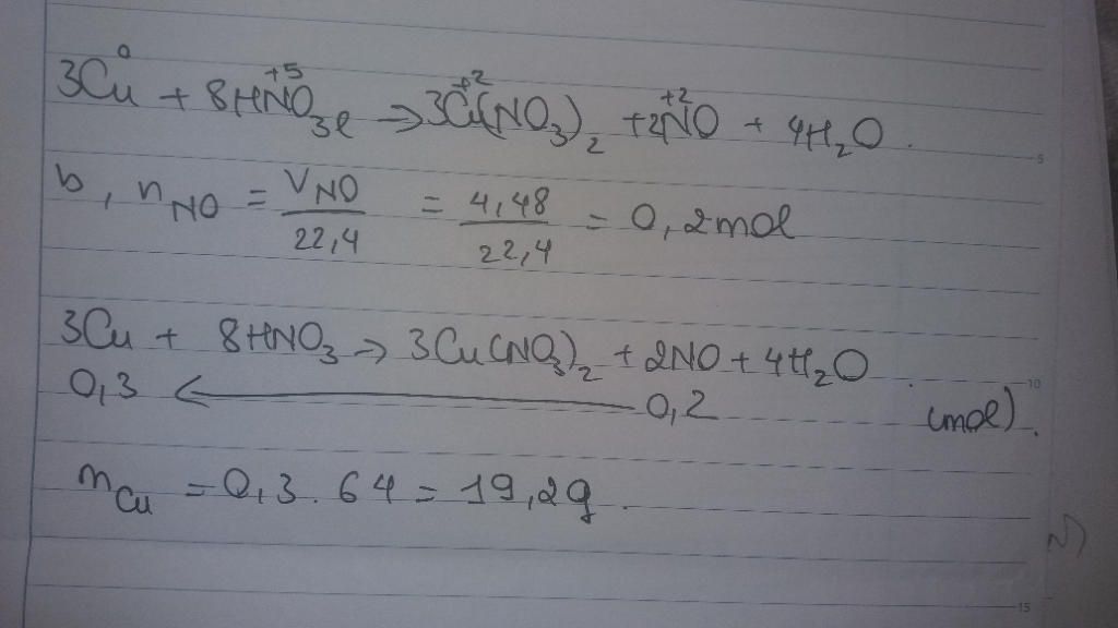 a) PTHH : Cu + HNO3 -> Cu(NO3)2 + NO + H2O