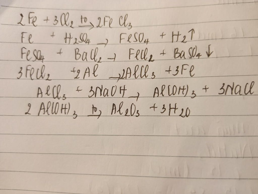 $3FeCl_2+2Al\to 2AlCl_3+3Fe$