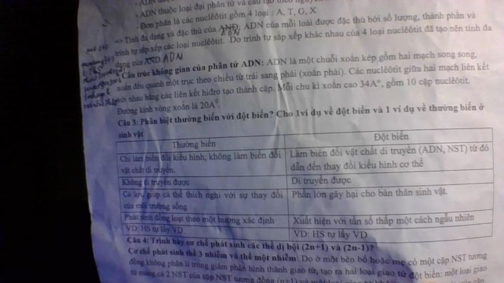 Phân biệt cụ thể giữa thường biến và đột biến:
