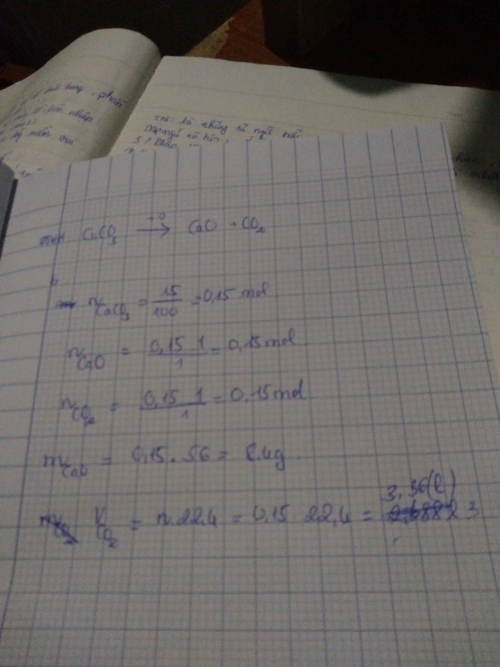 $n_{CaO}=n_{CO_2}=n_{CaCO_3}=\dfrac{15}{100}=0,15(mol)$