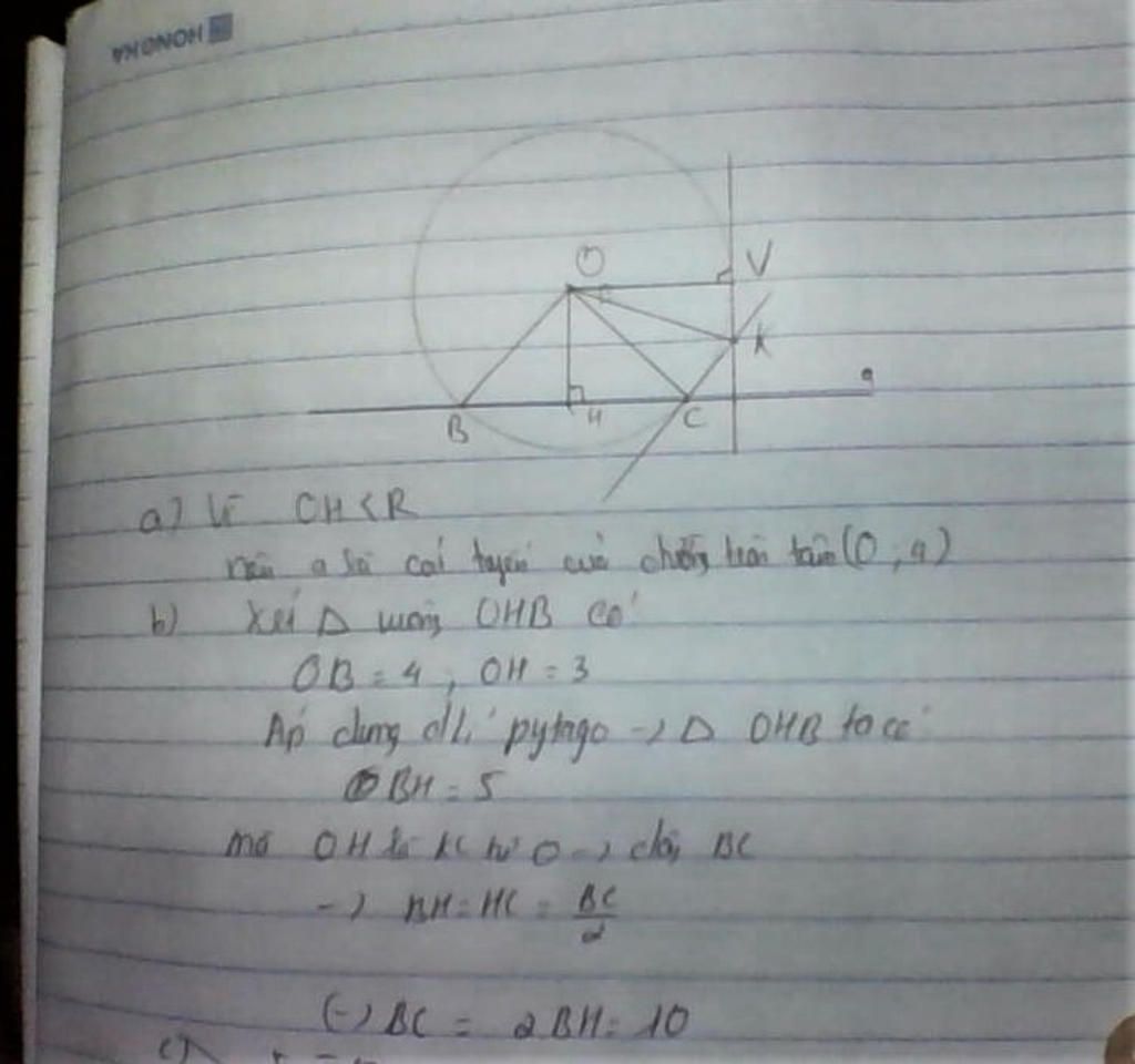 b) gọi B và C là 2 giao điểm của đường thẳng a và đường tròn tâm O bán kính 4cm.Tính BC.