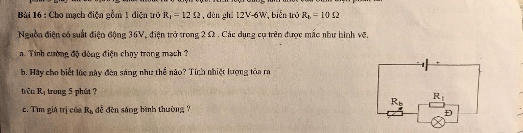 \Rightarrow R = \dfrac{E}{I} - r = \dfrac{{36}}{{1,5}} - 2 = 22\Omega \\