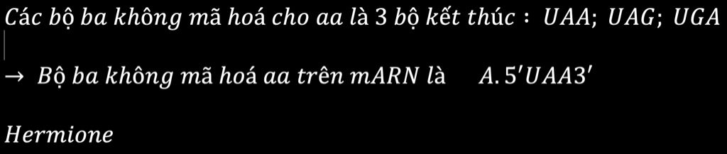 Trong bảng mã di truyền 3 bộ ba kết thúc không quy định aa.