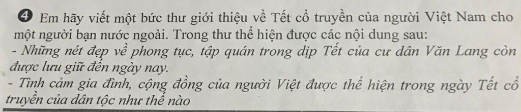 Mary thân mến! Dạo này bạn có khỏe không, kì nghỉ năm mới vừa rồi bạn có nhiều niềm vui chứ? Vậy là Tết cổ truyền của đất nước chúng mình cũng cận kề rồi, mình sẽ kể cho bạn nghe về ngày Tết của mình nha!